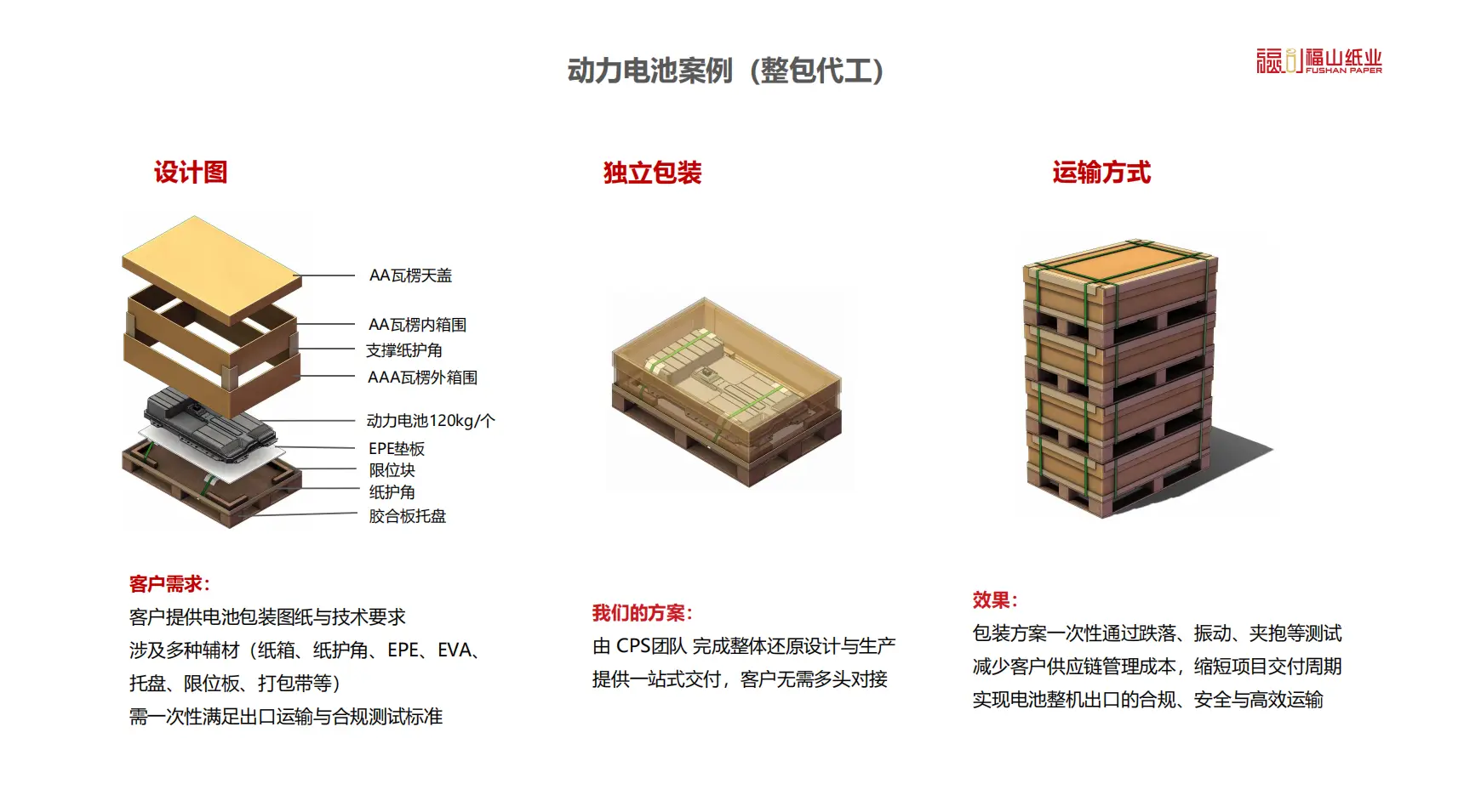 1、独立包装的木托盘加重型瓦楞纸箱 2、集合包装方案