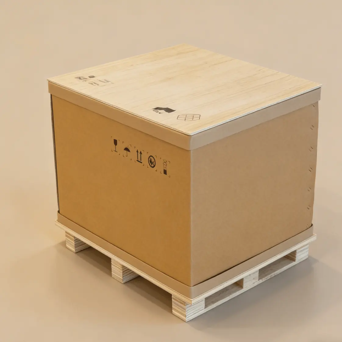 结合重型瓦楞纸箱与定制木托盘优势,形成高强度、低重量的综合包装结构,广泛应用于机械零部件、家电整机出口。